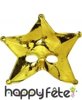 Ce masque est en macramé de couleur or.