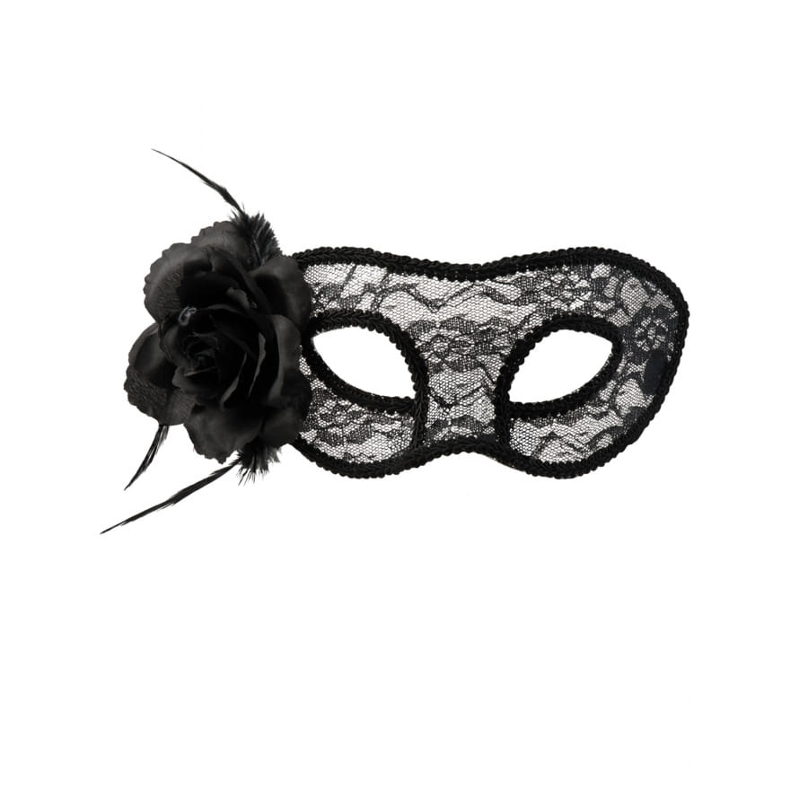 Ce loup en dentelle avec rose noire est idéal pour capter l'attention et charger la soirée de mystère et de charme.