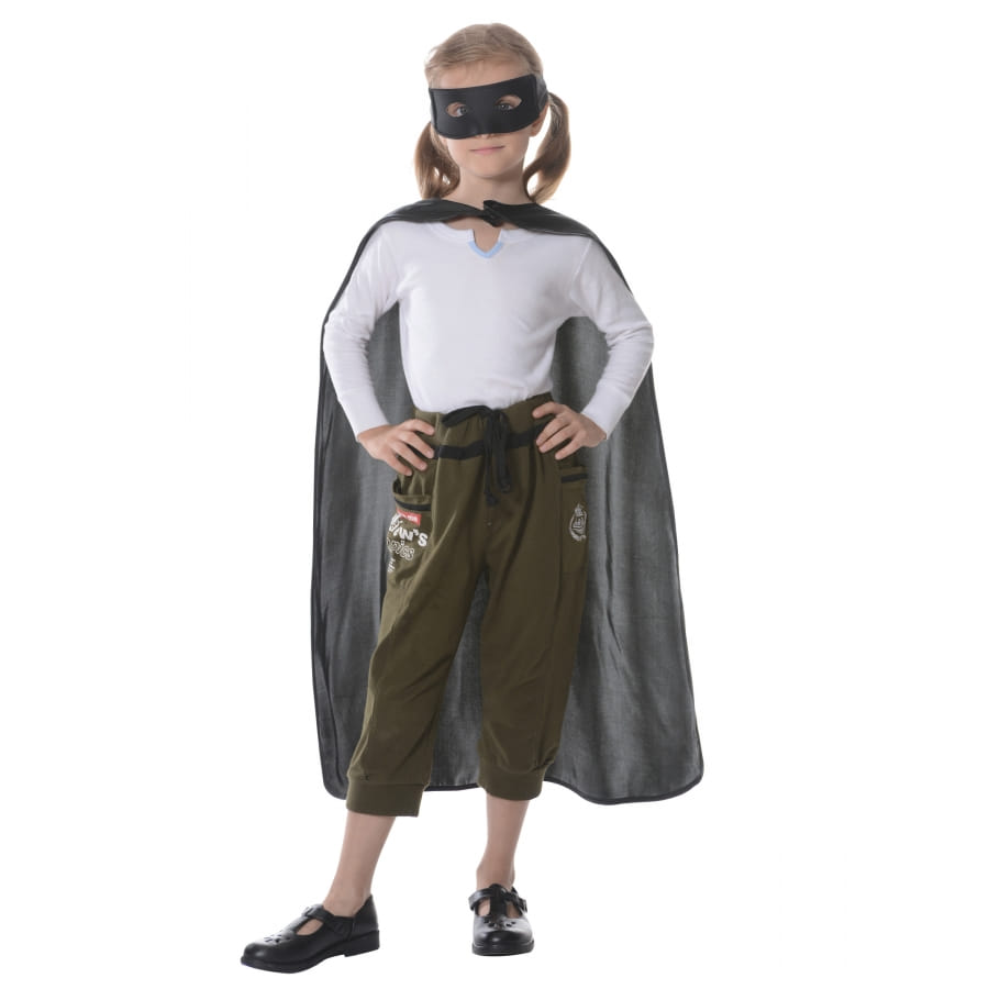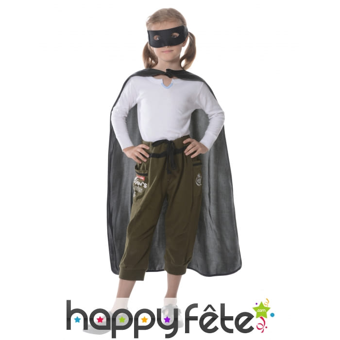 Apportez une touche de mystère au costume de justicier de votre enfant, en lui offrant cet ensemble loup et cape de super héros noir pour enfant.