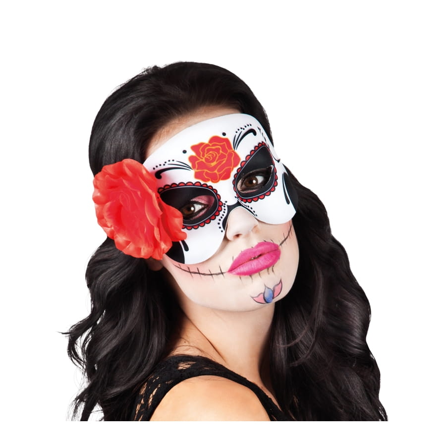 Comment résister à votre regard de braise sous votre loup jour des morts ? Il serait difficile de se détacher de vous avec ce masque sensuel proposé par Happyfête. Ce loup est joliment décoré avec une fleur rouge sur la partie droite et le tour des yeux en forme de pétales. Il arbore une touche originale de par ses motifs dont une fleur au niveau du front, et s'attache facilement autour de la tête.