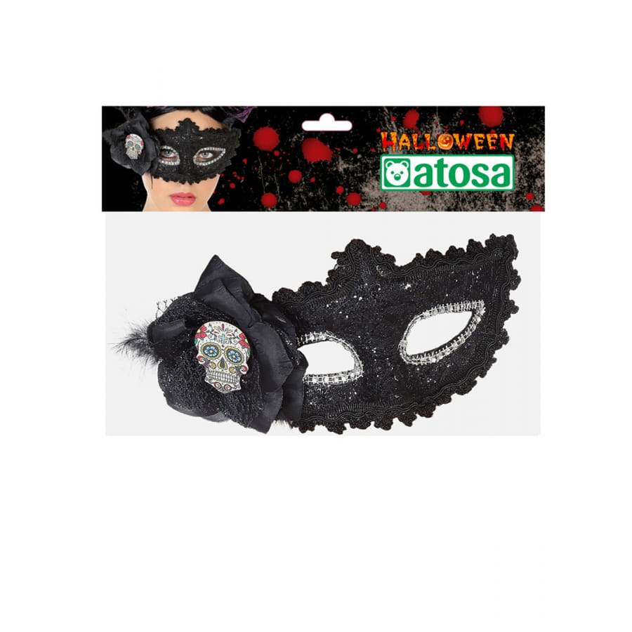 Ce masque apportera une touche finale à votre costume de Lady Calaver à l'occasion d'halloween.