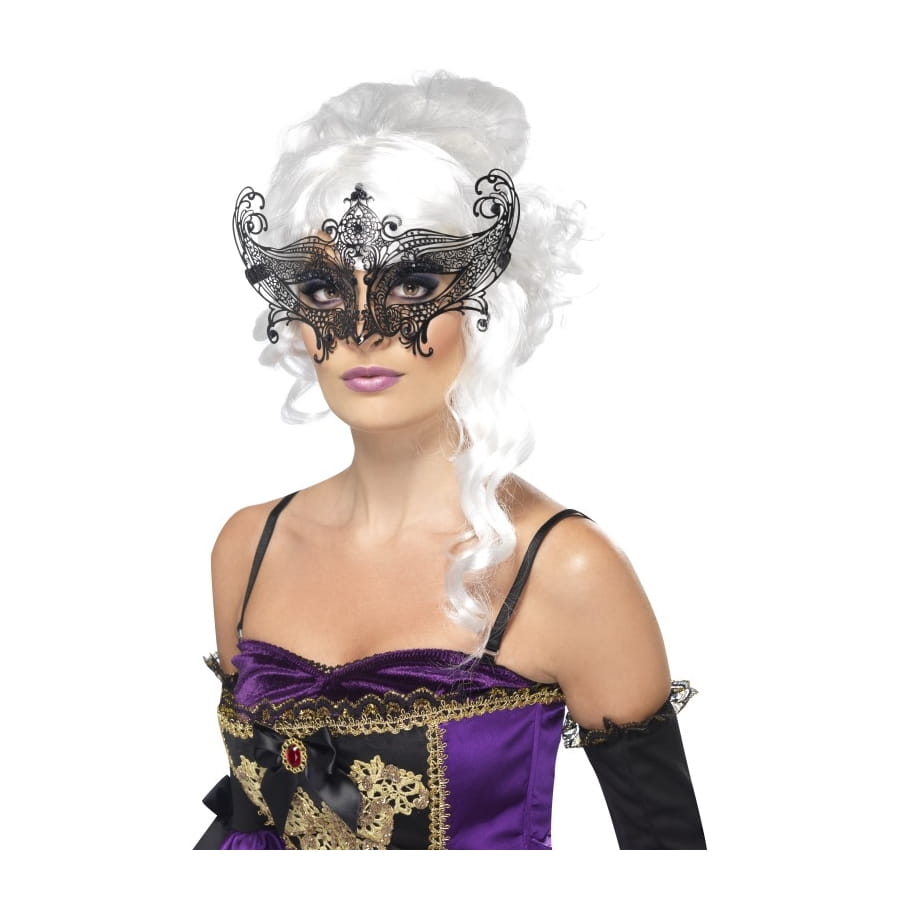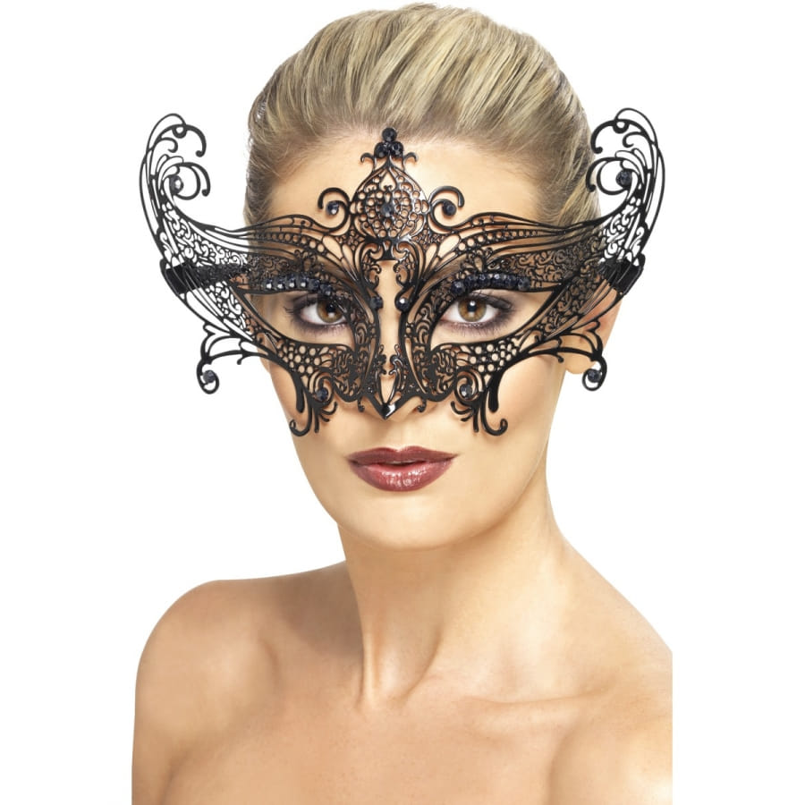 Une beauté insaisissable, voilà ce qui pourra qualifier toutes les femmes qui porteront ce magnifique masque. Un déguisement de marquise serait parfait avec ce loup qui mettra vraiment en valeur vos jolis yeux. Ce loup est de couleur noire et décorera somptueusement le contour de vos yeux avec du métal en filigrane. Ce loup est indescriptible, mais celles qui le verront tomberont directement sous son charme.