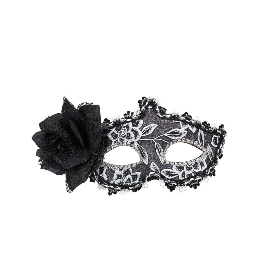 Nous vous présentons un loup noire blanc avec dentelle et fleur noire