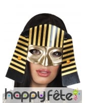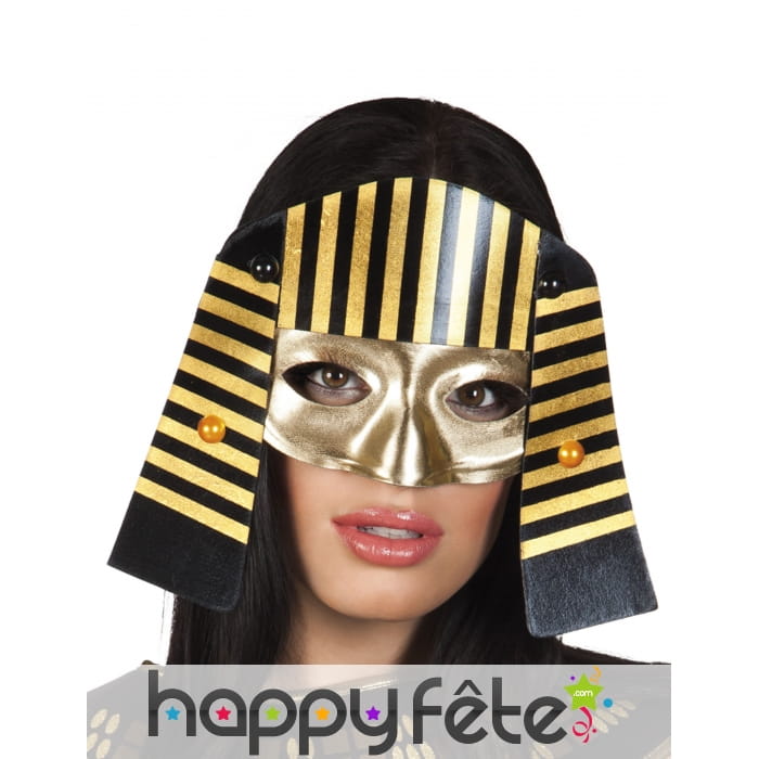 En route vers le pays des pyramides, avec notre loup pharaon noir or qui apportera une touche de mystère dans votre déguisement d'égyptien.