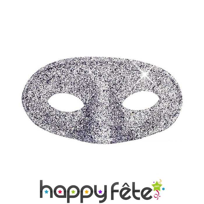 Loup rond recouvert de paillettes argentées est en masque pour adulte.