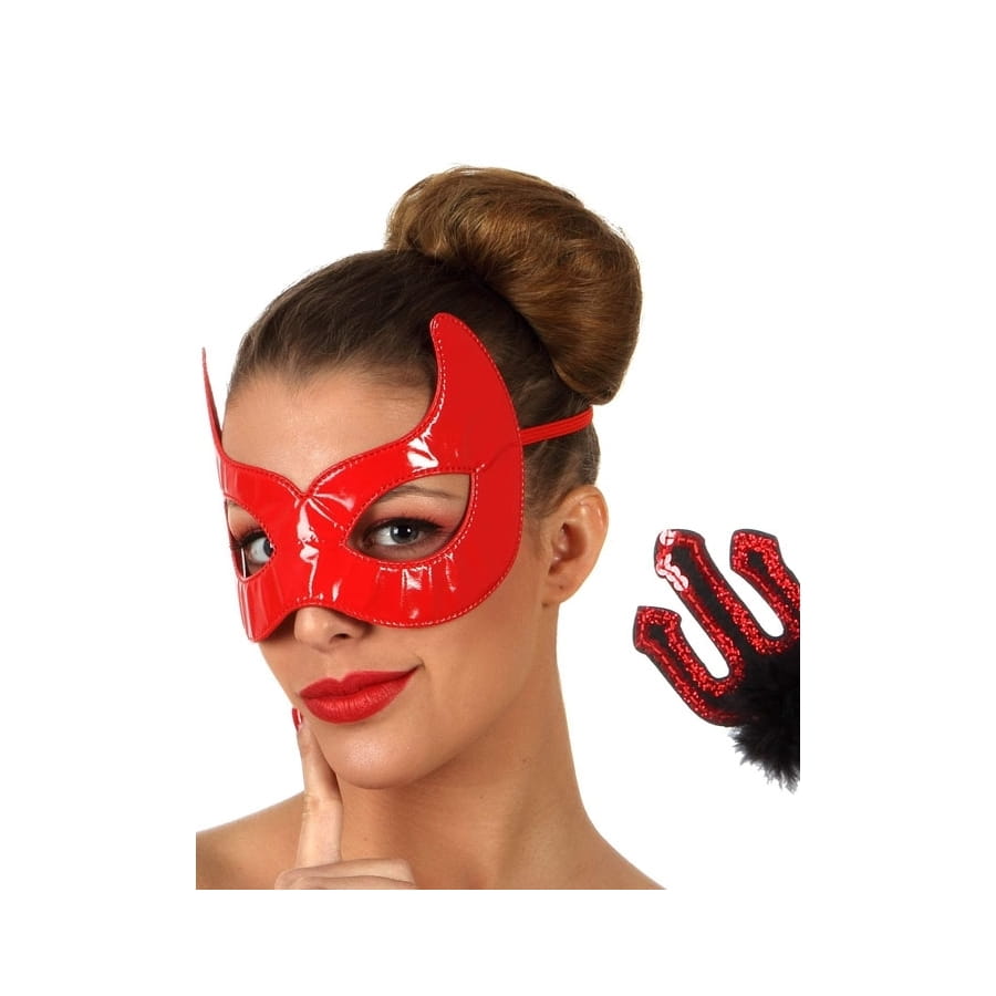 Nous vous proposons notre loup rouge brillant de diablesse et trident.
