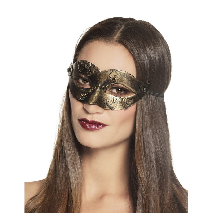 Le loup steampunk avec engrenages dorés pour femme est en plastique.