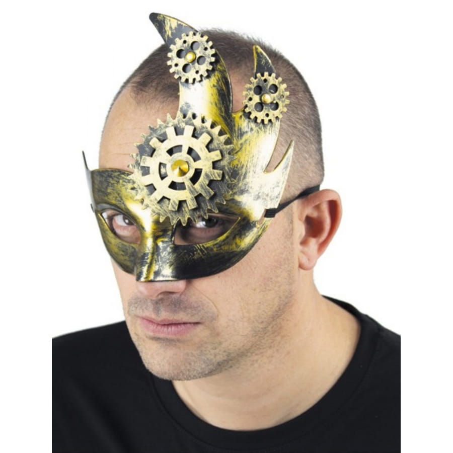 Le loup steampunk bronze avec rouages pour adulte est en plastique.