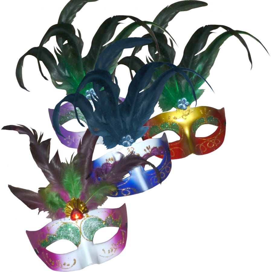 Ce magnifique loup vénitien pour homme comme pour femme est multicolore. Vous pourrez le porter pour le carnaval ou une fête ayant pour thème Venise. Avec ces plumes assorti aux loups, il apportera un effet chic et coloré pour le carnaval.
