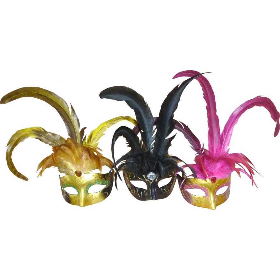 Ce splendide loup vénitien pailleté avec une pierre et des plumes de jolis couleurs est ce qu'il vous faut pour le carnaval ou une fête a thème Venise. Les plumes débutent du centre du loup. Celui ci peut être doré ou noir avec des plumes rose, noir ou doré (ou d'un autre coloris). Ce loup est pour monsieur ou madame vous pouvez incarnez un séducteur ou une séductrice avec ce loup.