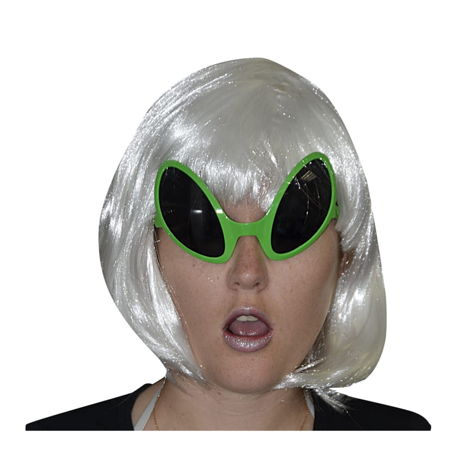 Paire de lunettes vert fluo et noire, pour homme. Ces lunettes sont en forme de yeux aliens. Elles vous donneront un air étrange et sont idéales pour une soirée basée sur le thème de la science-fiction.