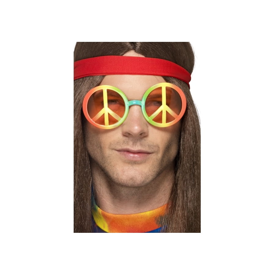 Pour accessoiriser un costume des années 50 et 60, ces lunettes avec symbole hippie, multicouleurs seront juste parfaits. Dans un mélange de couleurs arc-en-ciel mêlant le jaune, le vert, l'orange, le bleu et le rouge, la monture ronde représente le fameux symbole de la paix, peace and love. Des tenues adéquates de hippie sont à retrouver dans la section déguisements de Happyfete.