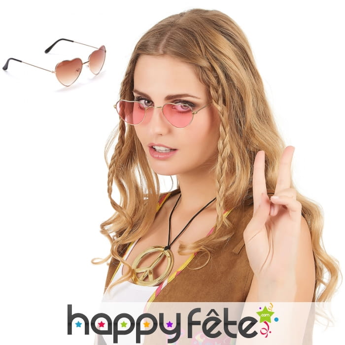 Soignez encore un plus votre tenue hippie en pensant aux derniers détails du costume, grâce aux lunettes coeur avec montures en métal.