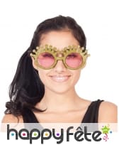 La monture dorée des lunettes est sculptée de façon à représenter un doigt d'honneur à chaque verre.