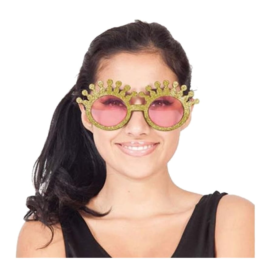 Ces lunettes dorées en forme de couronne sont faites de grands cercles de couleur or pailleté.