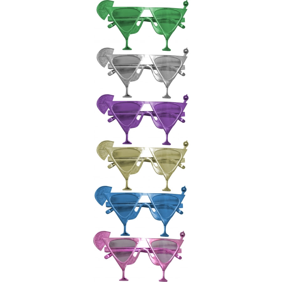 Lunettes métallisées en forme de cocktail, pour femme ou adolescente. Au moment de passer la commande, vous ne pourrez choisir ni le modèle ni la couleur. Vous recevrez le modèle argent, bleu, doré, vert ou violet. Elles sont idéales pour un enterrement de vie de garçon ou de jeune fille, vous donnant un look déjanté!
