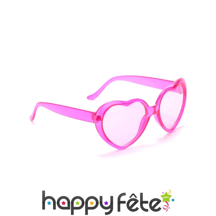 La paire de lunettes en forme de coeur rose en plastique pour adulte est destinée aux femmes.