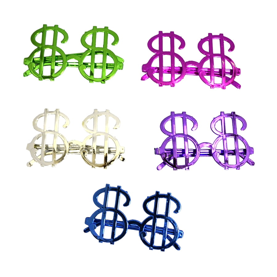 Paire de lunettes en forme de dollars dorés, pour homme ou femme. Elles sont fournies sans les verres et conviennent parfaitement à une soirée bling bling excentrique. Elles sont vendues dans différentes couleurs et il ne vous est pas possible, lors de votre commande, de choisir les couleurs. Achetez plusieurs fois ce produit pour recevoir différents coloris.