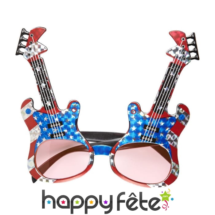 La paire de lunettes en forme de de guitares de rock USA pour adulte sont en plastique.