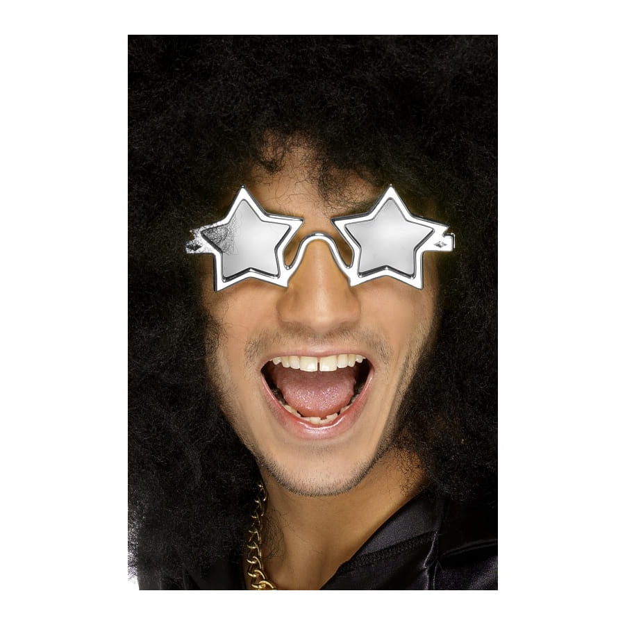 Paire de lunettes en forme d'étoiles argentées, pour homme, femme, adolescent ou adolescente. Complétez votre tenue disco avec cette paire de lunettes excentrique!
