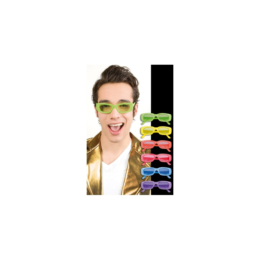 Vous serez funky avec ces lunettes fluorescentes. Vous ne pourrez choisir ni le modèle ni la couleur de cet accessoire. Vous le recevrez dans une des couleurs présentées: bleu, jaune, rose, vert, violet, orange. Ces lunettes sont idéales pour un carnaval.