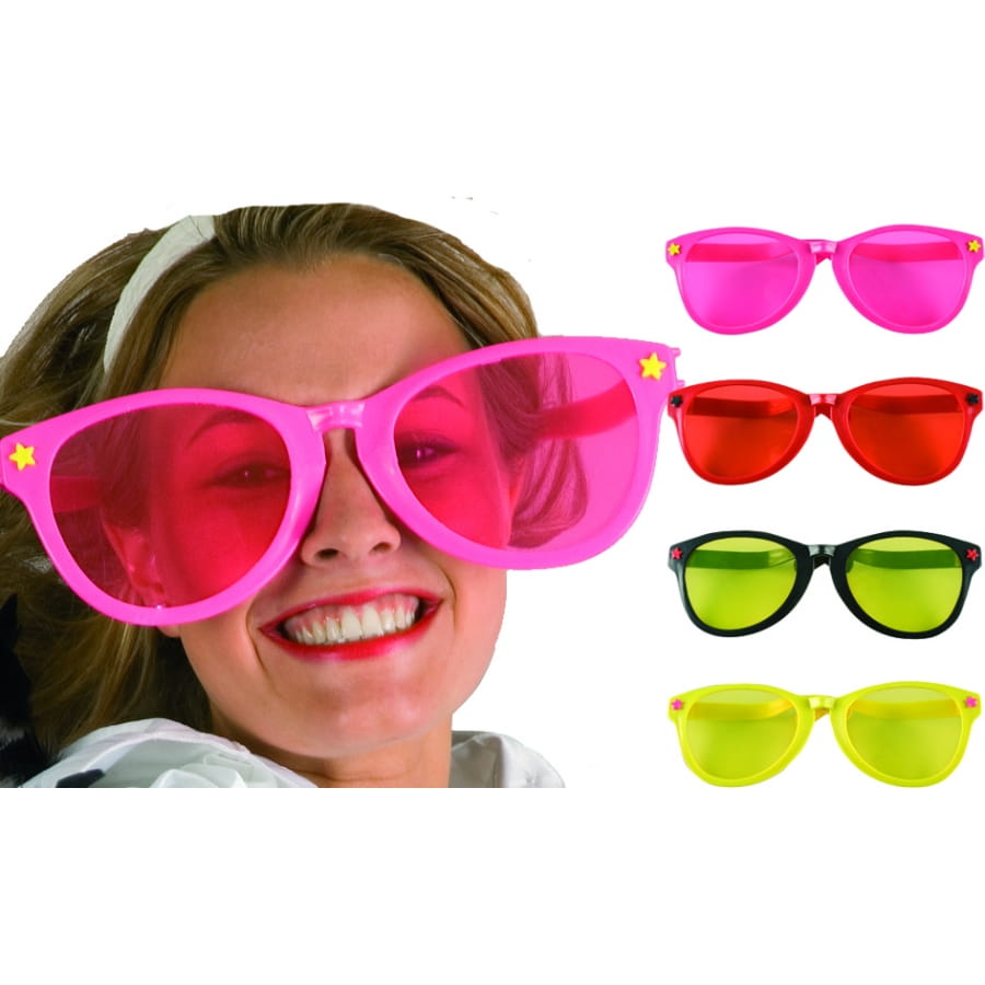 Paire de lunettes géantes multicolores. Lorsque vous passerez la commande, vous n'aurez pas la possibilité de choisir le modèle ou la couleur des lunettes, vous les recevrez exactement comme présentées. Elles sont idéales pour un carnaval.