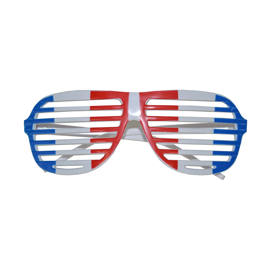 Les belles couleurs du drapeau tricolore français sont reportées sur cette paire de lunettes. Enfilez-les lors de la fête nationale ou pendant une compétition sportive, elles montreront votre grand patriotisme ! De couleur bleue, blanche et rouge, ces lunettes présentent des motifs en forme de grille, ce qui leur donne un aspect unique. Vous ne vous en lasserez jamais !