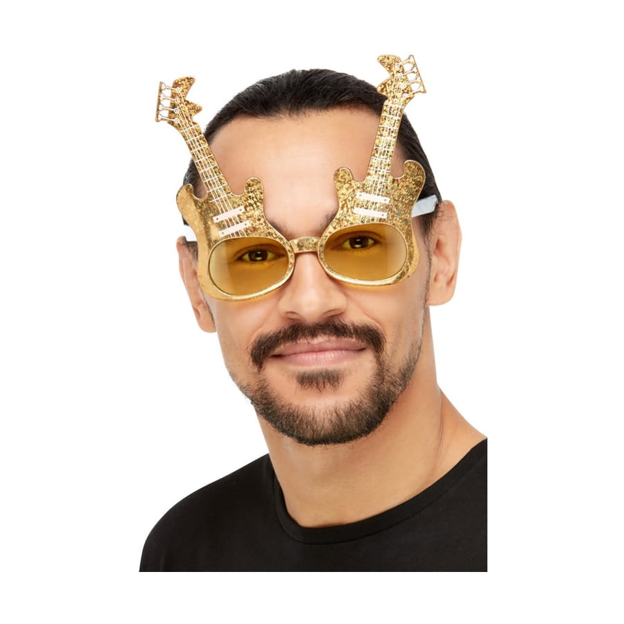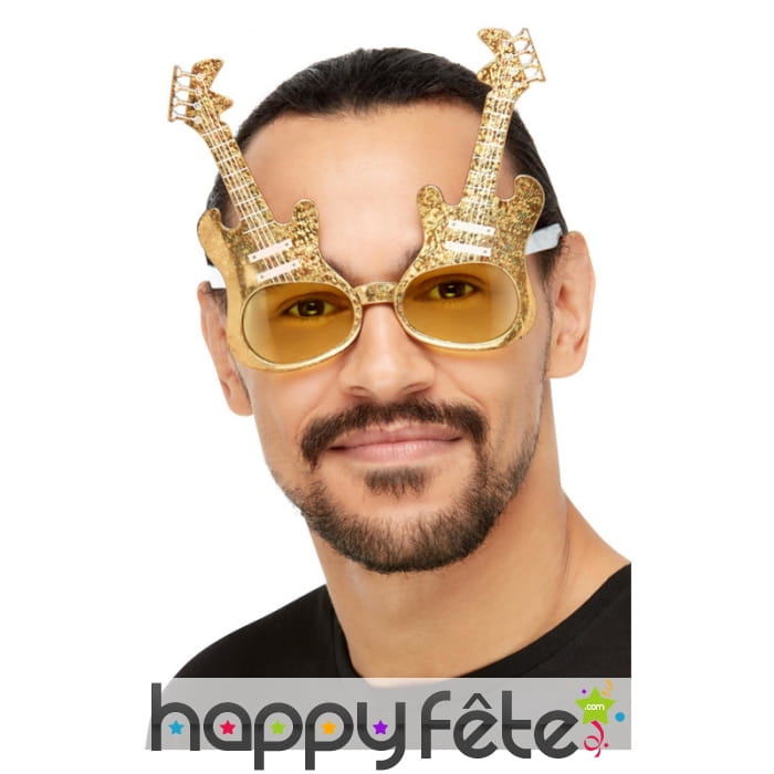 Célébrez la musique et le rock'n roll en agrémentant votre tenue par ces Lunettes guitare électrique dorées.