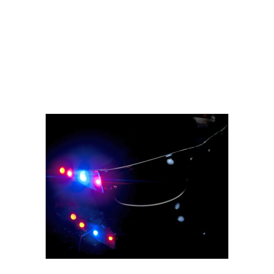 Paire de lunettes de couleur noire pour homme ou femme. La particularité de cet accessoire réside dans ses baguettes qui sont intégrées de lumières Leds multicolores. Vous pouvez porter ces lunettes pour une soirée spéciale science-fiction ou fantastique.