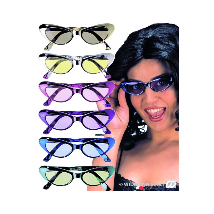 Paire de lunettes Cats' Eyes avec protection UV400. Vous ne pourrez choisir ni le modèle ni la couleur lorsque vous passerez la commande. Vous recevrez les lunettes dans une des couleurs présentées: gris, blanc, fuchsia, violet, bleu ou vert. C'est un accessoire idéal pour mener le rôle d'une star!