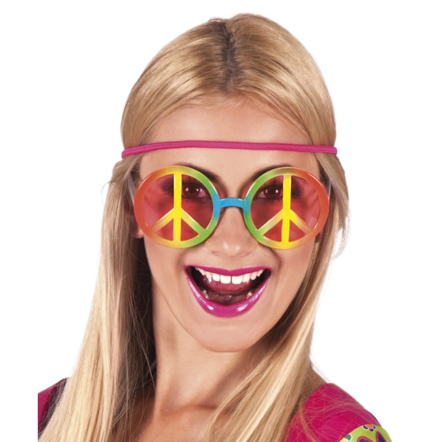 Le symbole Peace and Love multicolore est floqué au centre des verres ronds.
