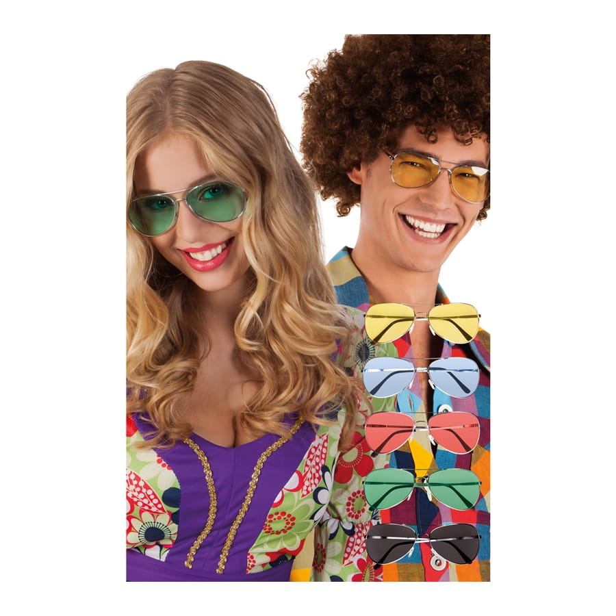 Et même en vert ou en orange, et bien d'autres encore grâce à ces lunettes rétro avec verres colorés.