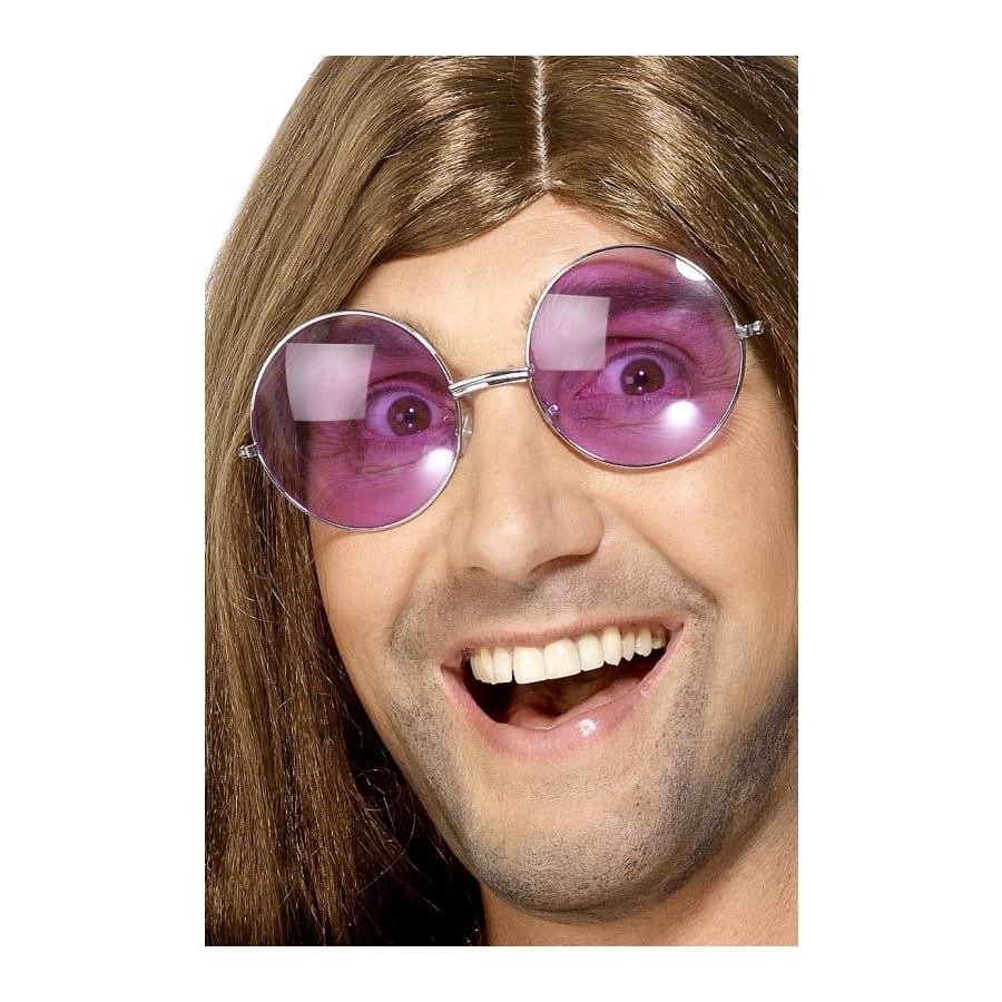 Pour compléter votre déguisement pour une fête sur les années 70 pourquoi ne pas porter cette magnifique paire de lunette. Elle est ronde de couleur mauve, la monture est argenté.