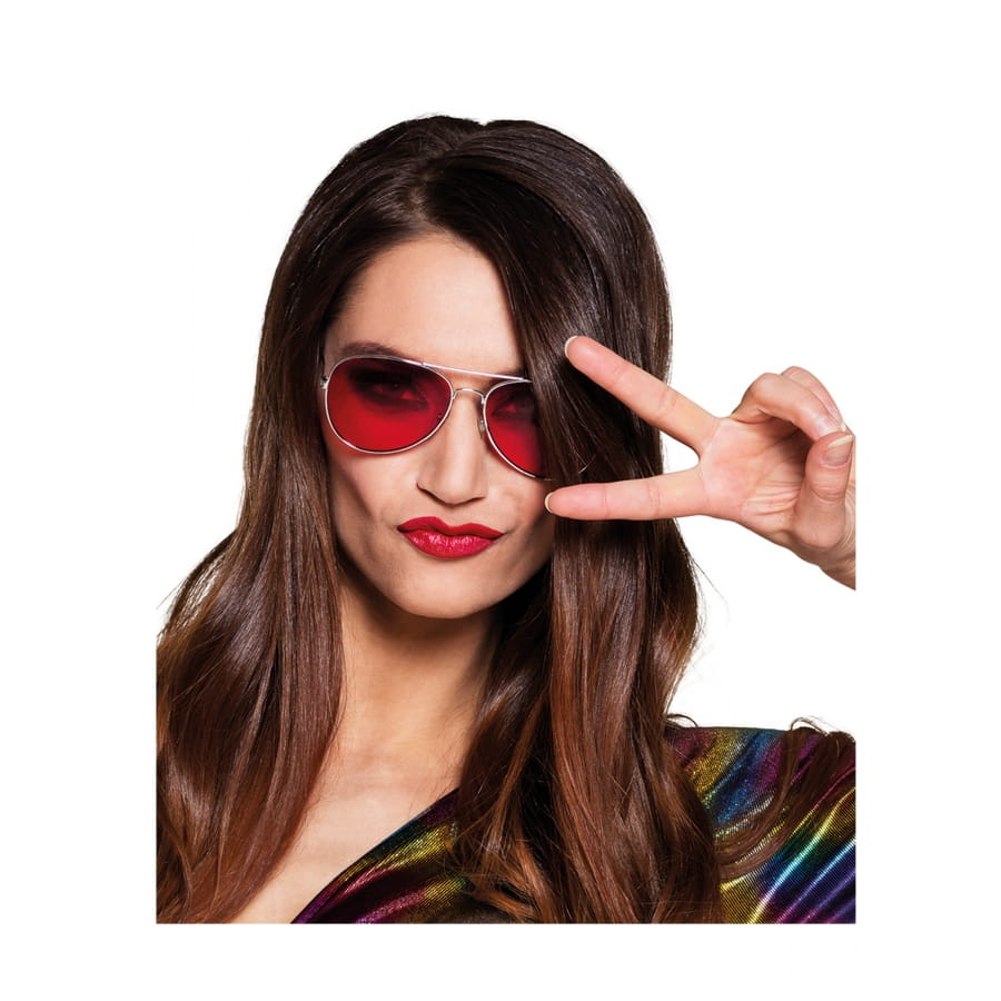 La paire de lunettes rouge modèle aviateur est un accessoire pour adulte.