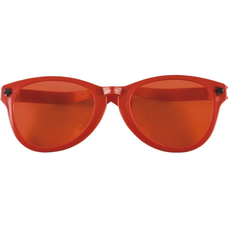 Pour plus de fun avec votre tenue de clown, optez pour cette paire de lunettes rouges géantes, qui a des branches de 16 cm, une largeur de 26 cm et 9 cm de haut. Elles sont destinées aux hommes et femmes adultes, avec une monture d'une couleur rouge vive, ornée de deux petites étoiles des deux côtés, et des verres rouges également.