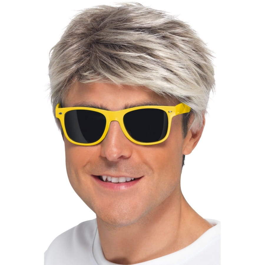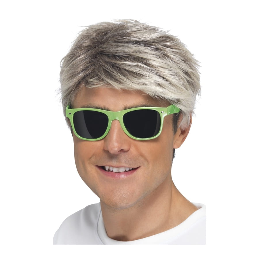 Paire de lunettes de soleil pour homme ou femme. La monture est de couleur vert fluo (orange, rose ou bleue) tandis que les verres sont de couleur noire. Ces lunettes dans un style années 80 sont vendues à l'unité et il n'est pas possible de choisir le coloris de la monture au moment de la commande. Vous recevez l'un des coloris présenté en fonction de la disponibilité en stock.
