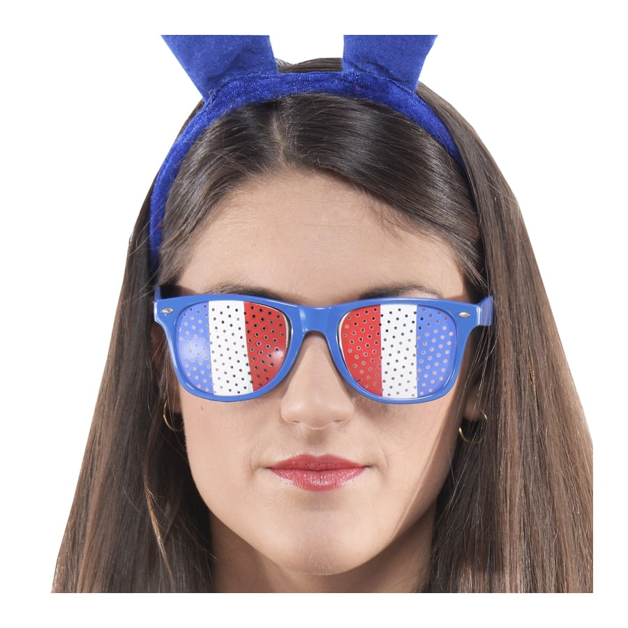 Il s'agit ici d'un accessoire de déguisement qui vous permettra de porter les couleurs de votre pays d'une manière très stylée. À l'occasion de la fête nationale française ou encore pour apporter la touche finale à votre déguisement de supporter de football, optez pour ces lunettes tricolores bleu blanc rouge France dotées de nombreux petits trous qui vous permettront de voir à travers.