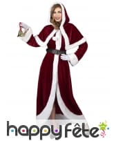 Faites sensation lors de vos soirées de Noël avec cette luxueuse tenue de Mère Noël aux dorures étincelantes. Conçue avec un souci du détail et un sens aigu de l'élégance, cette robe longue en velours lie de vin saura vous mettre en valeur tout en restant fidèle à l'esprit festif de la saison.