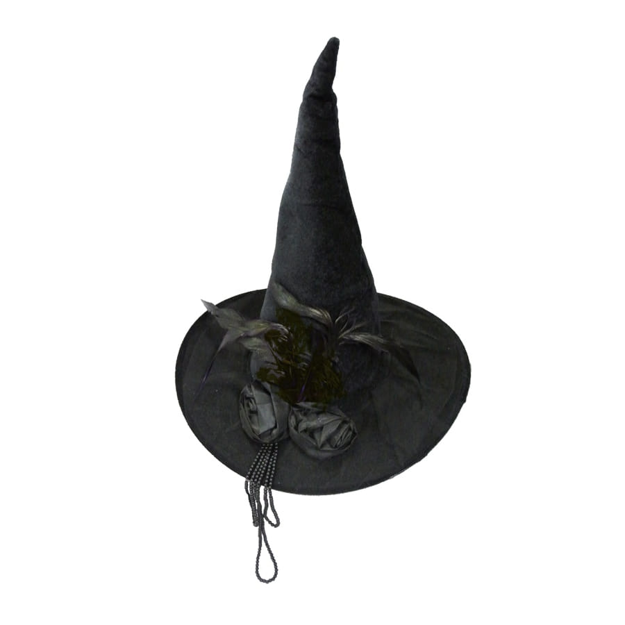 Élégant mais inquiétant ! Ce luxueux Chapeau noir pointu de sorcière est de taille adulte, spécialement conçu pour la gente féminine. En effet, il est entièrement de couleur noire, agrémenté de roses noires, de plumes noires et de perles, toujours noires. Avec ce chapeau, vous pourrez vous mettre aisément dans la peau d'une méchante sorcière, tout en gardant votre beauté, votre charme et votre féminité.
