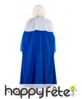La longue cape est de couleur bleu et se termine, dans le bas, par un large liseret en fausse fourrure.