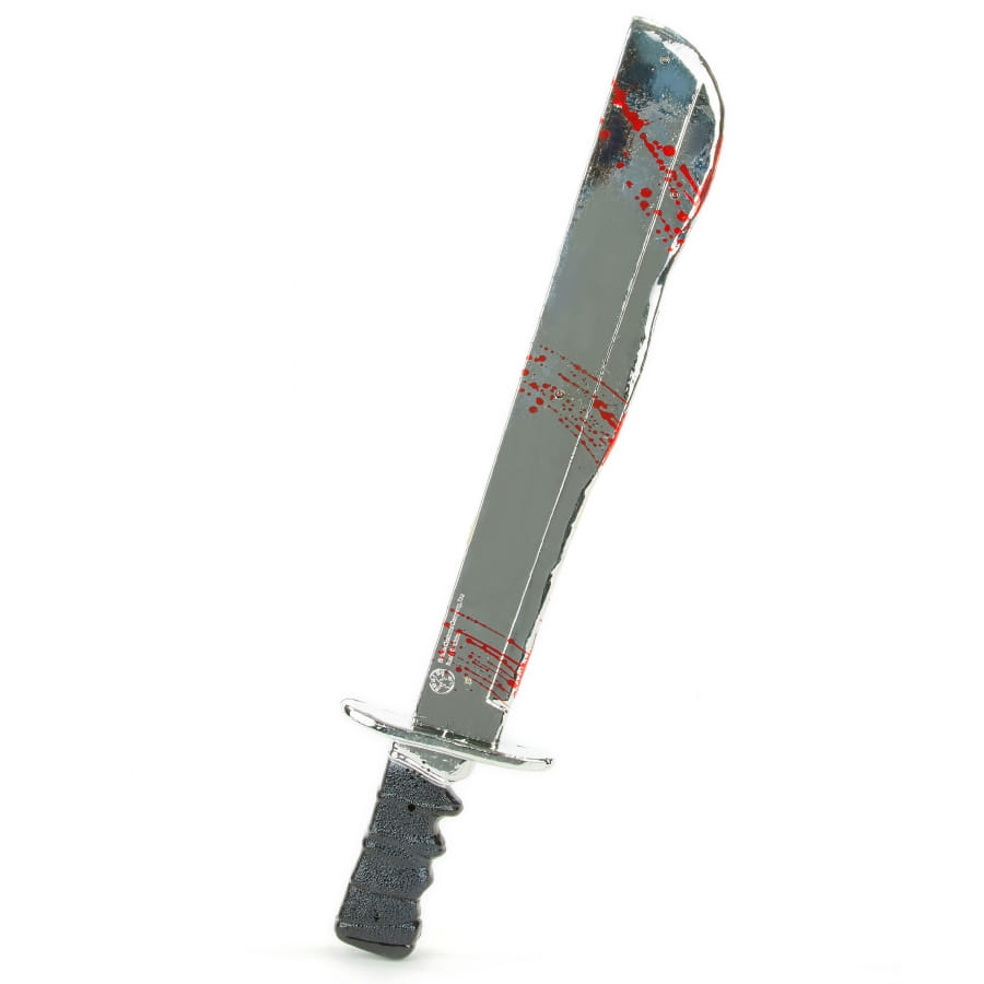 Pour cette année, soyez sûr de faire peur pour Halloween. Optez pour un déguisement sous le thème Jason du film Vendredi 13. Pour ce faire, nous vous proposons cette machette sonore de Jason en plastique. Fabriquée en plastique, elle mesure 55cm de long. La lame de cette machette a été peinte dans un gris. Sur cette lame, on retrouve quelques taches de sang, ce qui donne un effet réaliste. Le manche est en noir et Un petit bouton se trouvant dessus permet de déclencher le son.