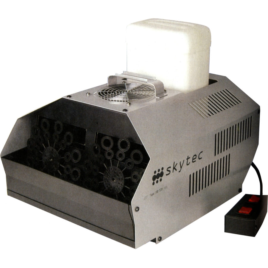 Machine à bulles de savon grand modèle double avec réservoir fixe à remplir, vendue sans liquide. La taille de cet accessoire est de 341 sur 170 et 172 millimètres. Utilisez cette machine pour créer une atmosphère romantique lors de mariages ou d'anniversaires.