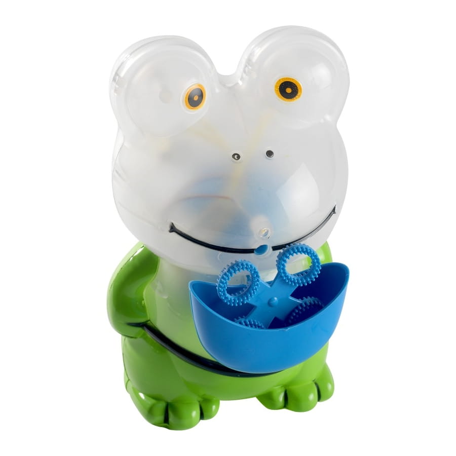 Machine à bllesen forme de mignonne petite grenouille lumineuse de couleur verte et bleue. C'est uniquement la tête de la grenouille qui s'allumera lorsque vous la mettrez en marche. Faites-la tourner lors d'un anniversaire pour égayer l'ambiance.