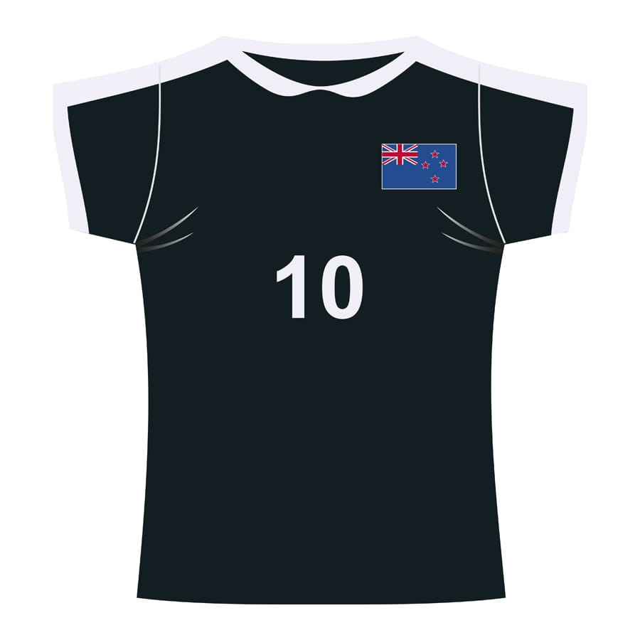 Pour supporter la Nouvelle Zélande dans les compétitions sportives, arborez fièrement le maillot de votre équipe et décorez tous les murs avec ce maillot de la Nouvelle Zélande en carton, pour devenir un supporter dans les règles de l'art. Ce maillot que vous voyez ici est de couleur noire et blanche et et mesure 31 cm de longueur et 33 cm de largeur.