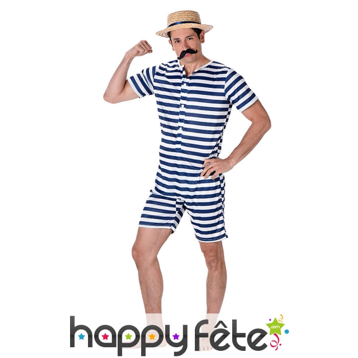 Transformez-vous en matelot des années 30 le temps d'une fête déguisée avec notre maillot rétro rayé blanc bleu pour adulte.