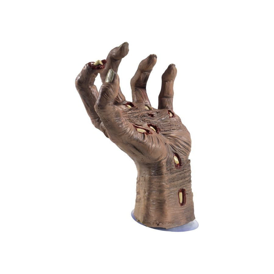 Si vous cherchez une décoration pour halloween, nous vous proposons la main de zombie coupée en latex. Cet objet décoratif tient en place grâce à une ventouse. Vous pouvez donc l'accrocher dans un couloir, sur une table ou sur une porte, selon votre inspiration. De couleur beige naturel, il ressemble à la main d'un cadavre desséché. Cette décoration présente également de petits trous ainsi que d'horribles rides. Entièrement composé de latex, cet article est d'un réalisme incontesté.