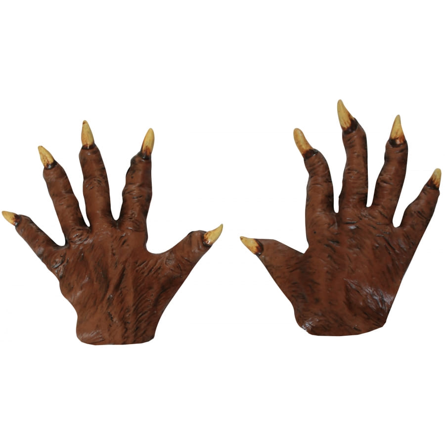 Il s'agit d'une paire de gants en latex de couleur marron qui imite à la perfection la peau animale.