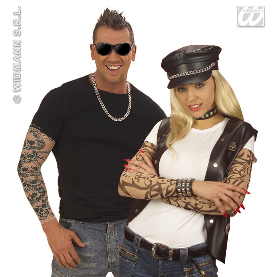 Manche tatouée mixte noire s'étendant jusqu'au poignet. Lorsque vous passerez la commande, il ne vous sera pas possible de choisir le modèle ou la couleur. Ce type d'accessoire convient parfaitement à un déguisement de biker ou de rockeur pour un carnaval ou pour Halloween.