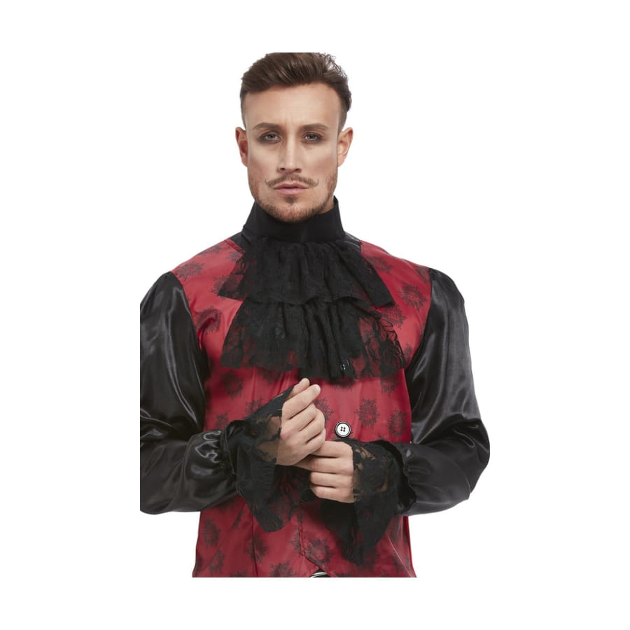 Gagnez vos lettres de noblesse en agrémentant votre tenue de marquis avec ces manchettes et col noirs de noble en dentelle.