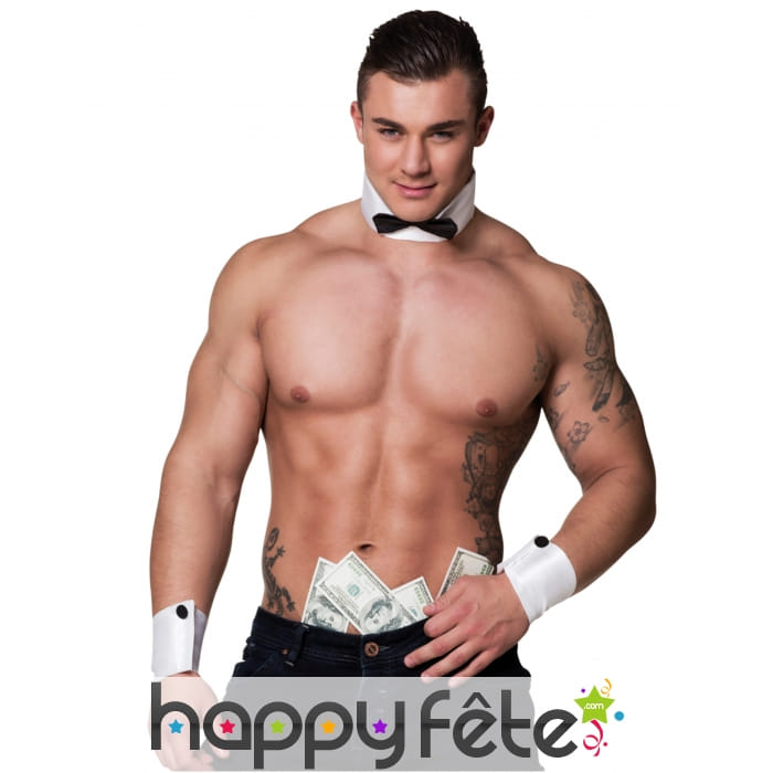 Paire de manchettes et tour de cou en tissu satiné de chippendale sont des accessoires de strip-teaseur.